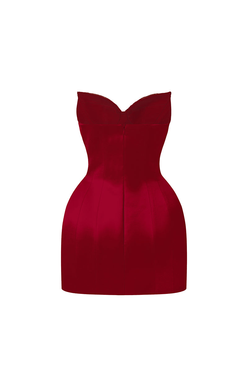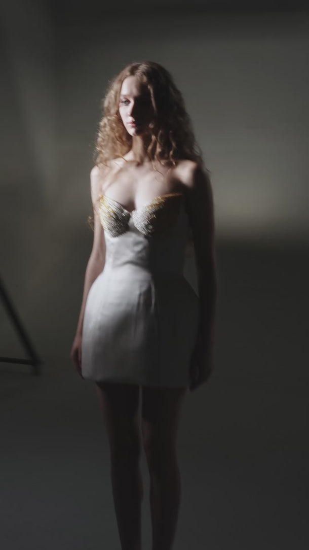 Ivory Satin Silk BustierMini Dress With Lotus-Petal Shaped Detailing